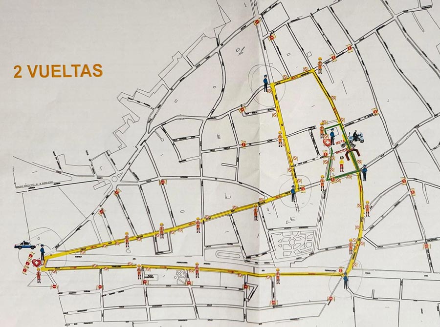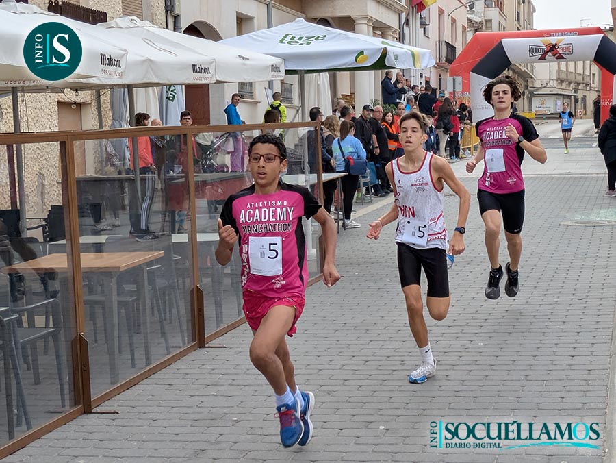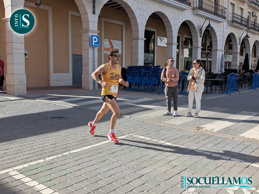 La prueba absoluta ha comenzado a las 11:30 h, con un recorrido que salía de la Plaza de la Constitución para continuar por la calle Amargura, subiendo después por el paseo de la Concordia y la calle Don Quijote hasta la rotonda de la Unión Deportiva Socuéllamos, para volver por la avenida del Ferrocarril hasta la calle del Rosario, por la que se regresaba a la Plaza de la Constitución. Había que dar dos vueltas para completar aproximadamente lo que es una legua (5.572,7 m), una antigua unidad de medida de distancia utilizada antes de la generalización del sistema métrico decimal y que correspondía, aproximadamente, a la distancia que una persona podía recorrer caminando en una hora.