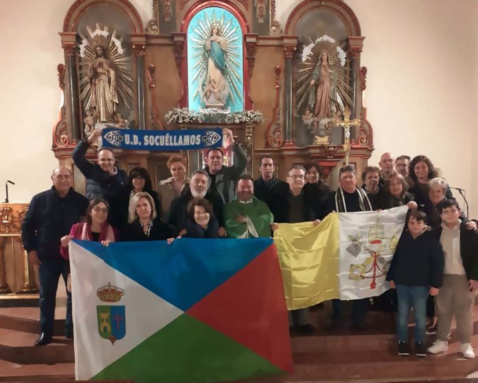 La comisión que representará a la Unión Deportiva Socuéllamos en su viaje a Roma ha asistido hoy domingo a una Misa oficiada por el capellán del equipo, don Juan Pedro Andújar, párroco de Socuéllamos, quien ha dedicado unas palabras en la homilía que servirán como preparación para esta peregrinación. La Misa se ha celebrado en la capilla de Ntra. Sra. de la Inmaculada a las 19:30 h. Don Juan Pedro ha comentado que la Iglesia Católica presta atención a todas las actividades humanas ya que pueden ser vías de dignificación y santificación, incluso algo tan aparentemente secular como es el deporte, en concreto el fútbol. Al finalizar la celebración el grupo ha posado para una foto conmemorativa con la bandera de Socuéllamos, la bandera vaticana y bufanda del equipo.