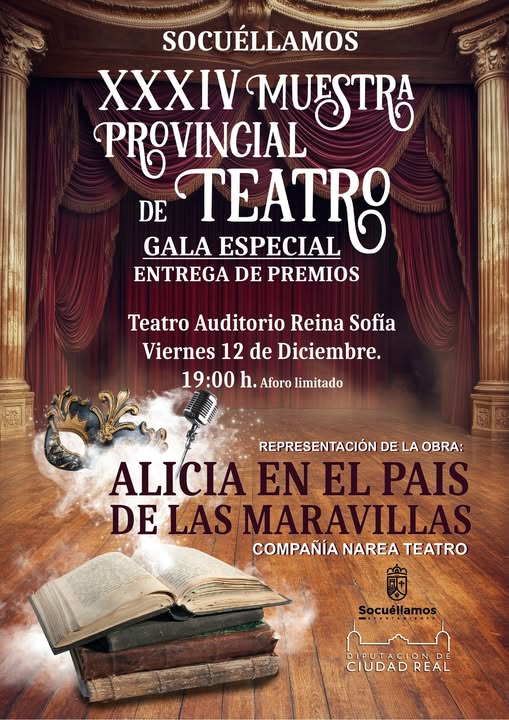 Como parte del programa, los asistentes podrán disfrutar de la representación de la obra Alicia en el País de las Maravillas, a cargo de la Compañía Narea Teatro, que pondrá en escena una versión propia del célebre relato. Este musical es más que un entretenimiento; es un punto de encuentro cultural que enriquece, fomenta la creatividad y celebra la herencia de unos sueños, al igual que el País de las Maravillas, está llena de encanto, historia y personajes inolvidables. La función dará continuidad a la velada y servirá como cierre artístico de esta edición número treinta y cuatro.