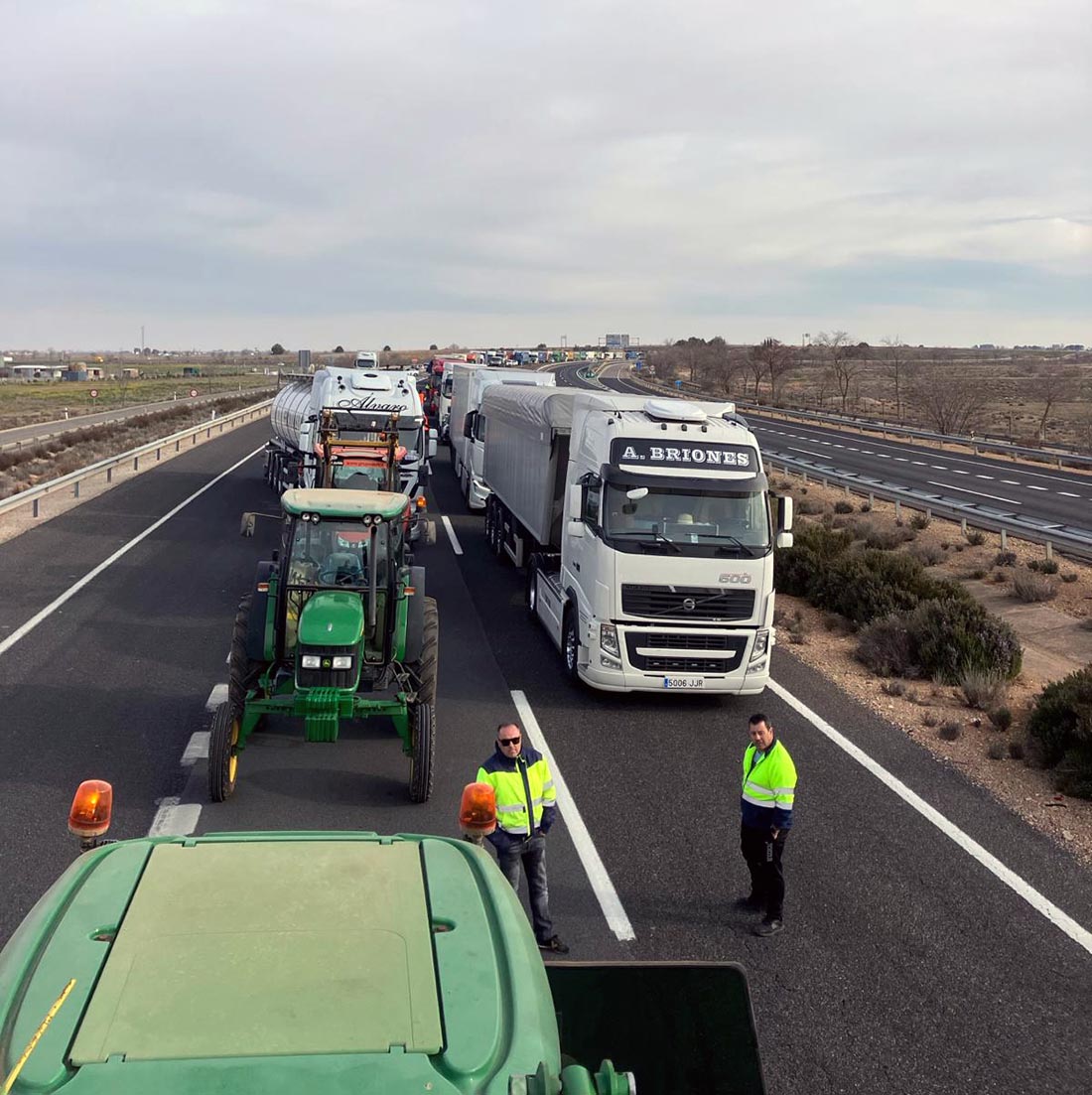 Esta mañana un grupo de agricultores con más de 50 vehículos salía de Socuéllamos a las 6:00 h hacia la explanada de la báscula de Tomelloso donde se han concentrado más de 300 tractores procedentes del propio Tomelloso y Socuéllamos además de Pedro Muñoz, Argamasilla de Alba, Arenales, Campo de Criptana y Cinco Casas. Según las últimas informaciones la caravana se dirigía hacia Manzanares por la A-43 que ha quedado atascada en ambas direcciones. Los participantes siguen insistiendo en que estas manifestaciones nada tienen que ver con organizaciones agrarias ni partidos políticos. A medida que van transcurriendo las horas nuevos manifestantes se van sumando a la marcha.