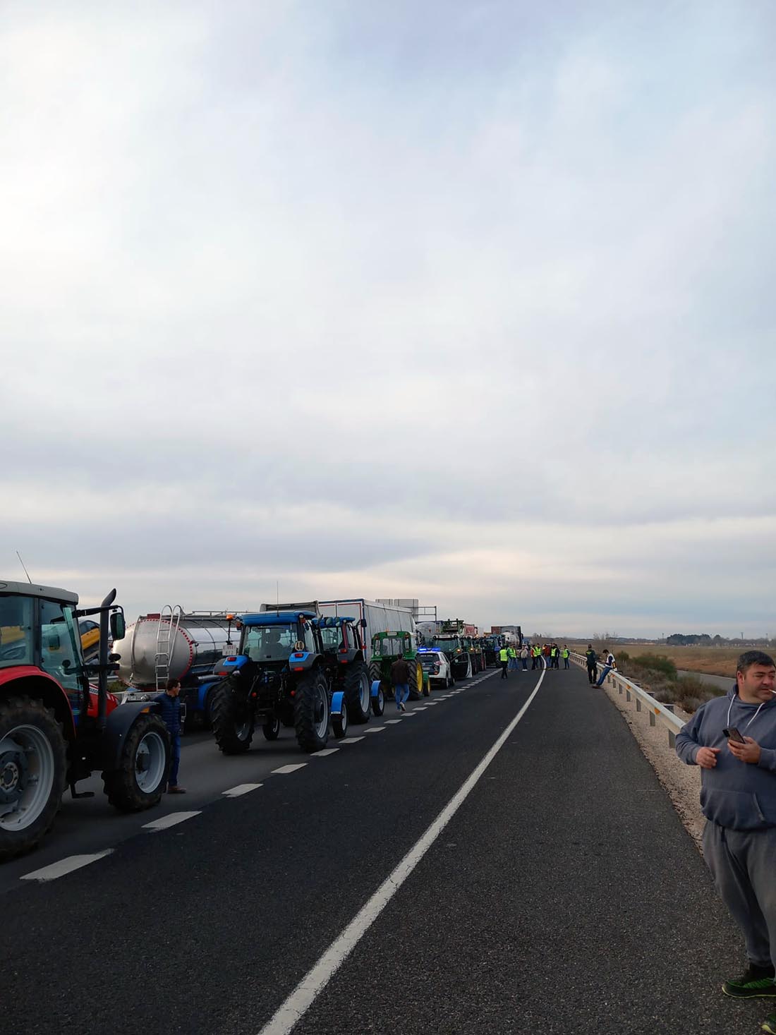 La Guardia Civil, según declaraciones de los agricultores están tomando nota de las matrículas porque, al parecer, no disponen de permiso para la movilización "por defectos de tiempo y forma" y han advertido que se exponen a sanciones.