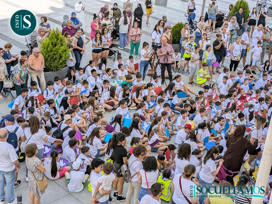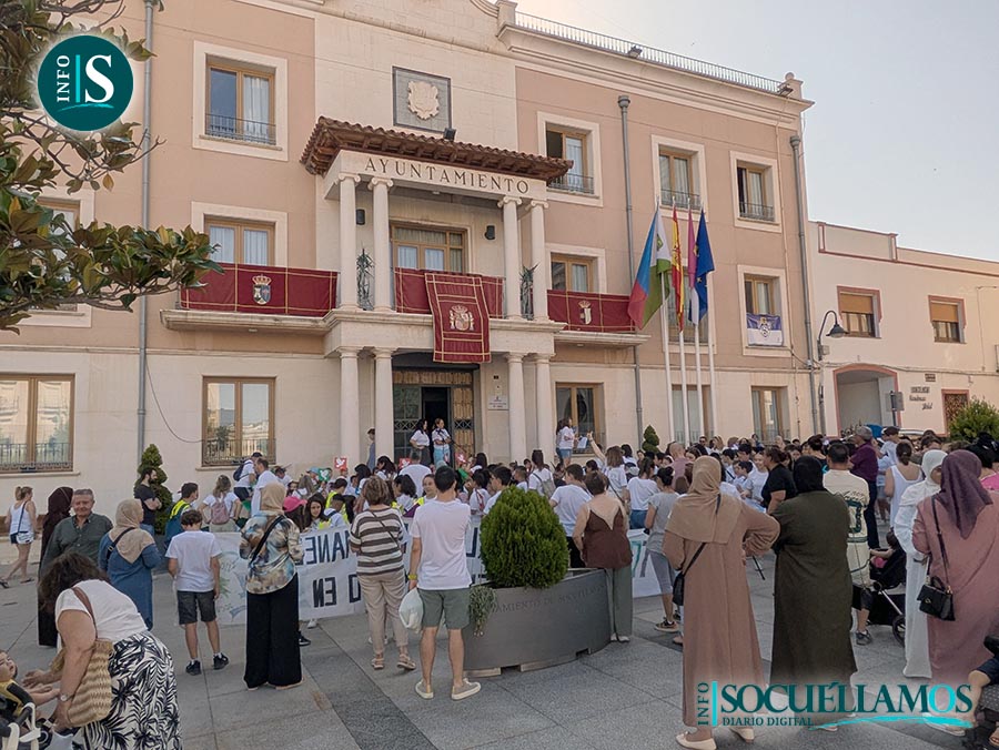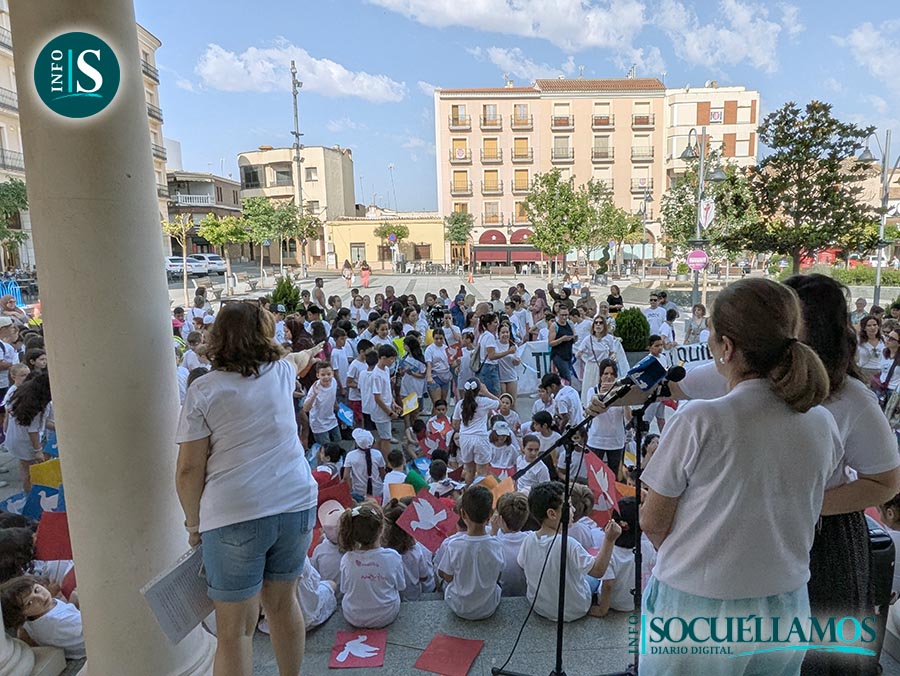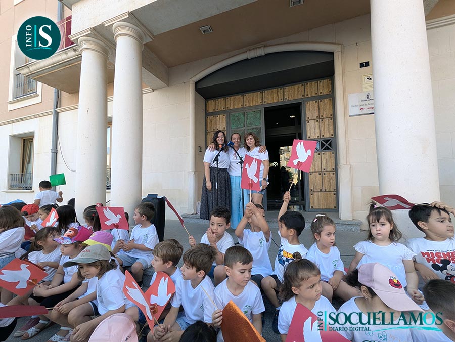 Ha sido en la puerta del Ayuntamiento donde se han leído varias poesías y narraciones que hablaban sobre la paz y también se han cantado los temas 'Los niños queremos la paz' y 'No dudaría'