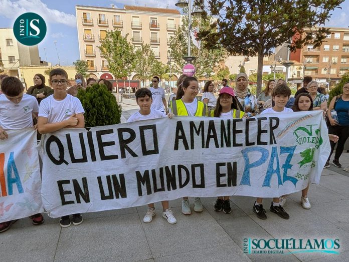 Ha sido en la puerta del Ayuntamiento donde se han leído varias poesías y narraciones que hablaban sobre la paz y también se han cantado los temas 'Los niños queremos la paz' y 'No dudaría'