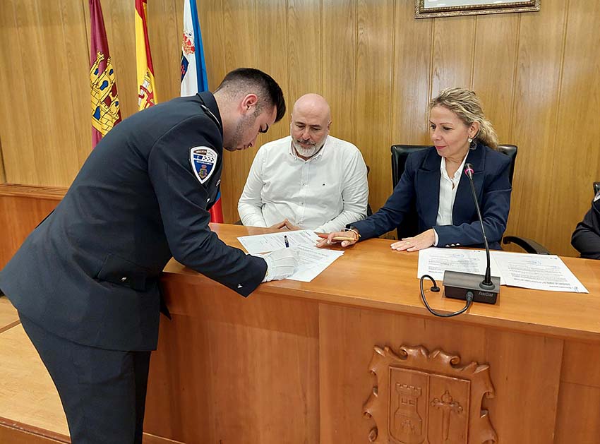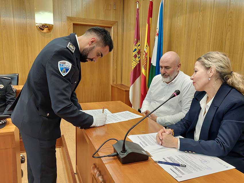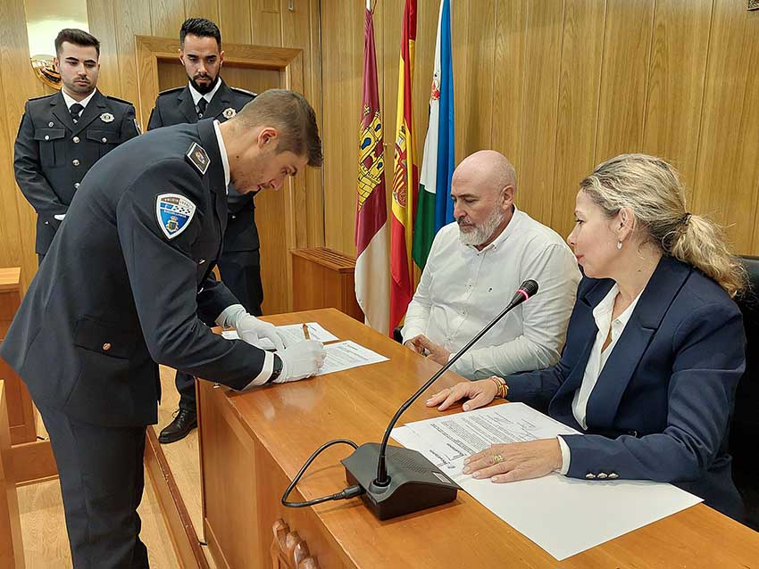 Lo han hecho en un acto en el Salón de Plenos del Ayuntamiento ante la alcaldesa, Conchi Arenas; el Oficial Jefe, Miguel Ángel Perona Ortiz; el Oficial, Emilio Julián García Muñoz; y el primer teniente de Alcalde y concejal de Seguridad, José Luis Romero del Hombrebueno.