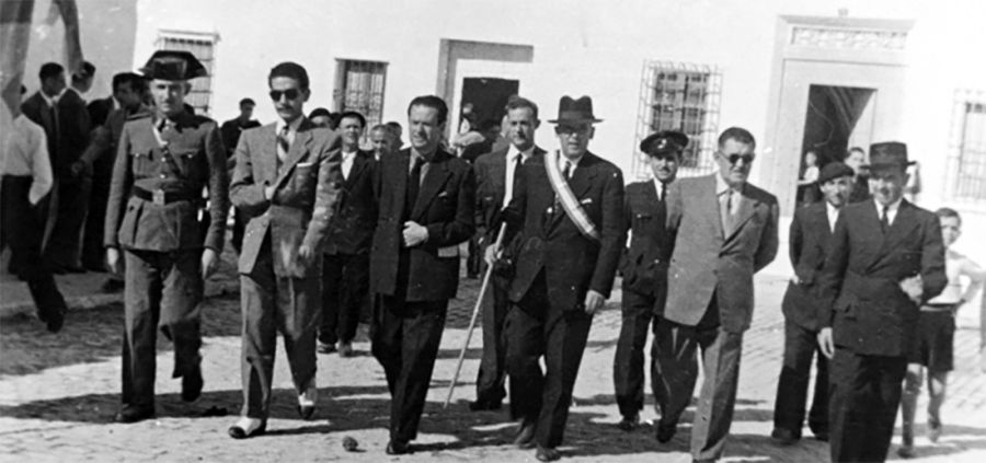 Como prueba de ello, esta fotografía del año 1947 en la que vemos a las autoridades municipales de la época acompañando al Mayordomo de la Hermandad portando la Vara referida dirigiéndose a la Parroquia Ntra. Sra. de la Asunción para asistir a la Procesión de nuestro Patrón de ese año, y junto a él D. Miguel Ponce de León Grande Tesorero en aquellos años de la Cofradía.