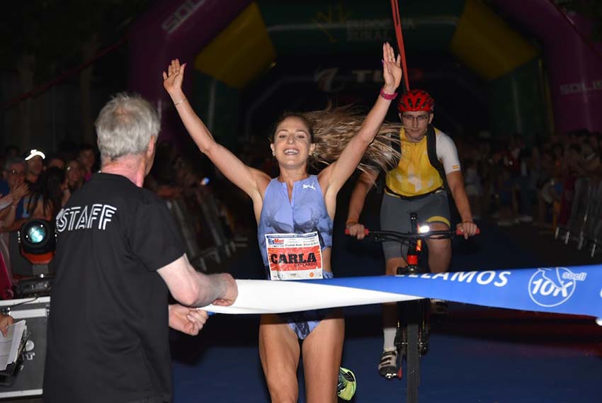 La primera atleta en romper la cinta fue Carla Gallardo que paró el reloj en 33 minutos y 47 segundos, batiendo el récord en 11 segundos.