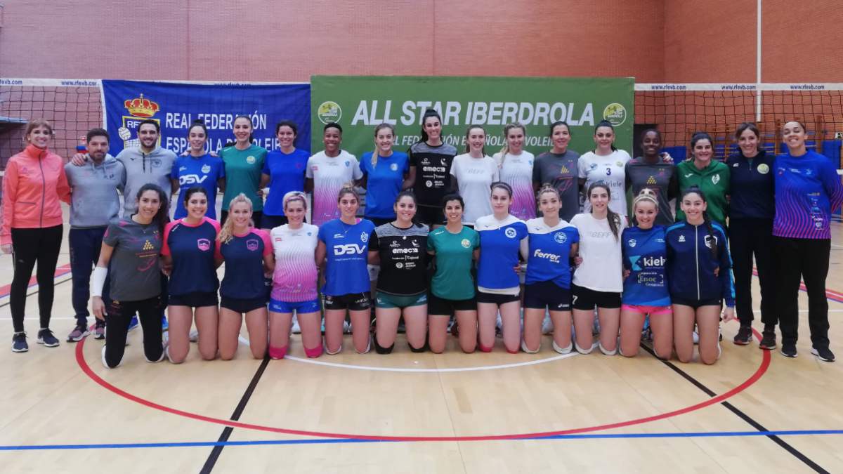 Las integrantes de los dos equipos que conforman el All Star Iberdrola se entrenaron por la mañana en la cercana localidad de Torrejón, para preparar el choque de las estrellas de la competición femenina. El Equipo Verde y el equipo Morado tuvieron la ocasión de conjuntarse antes de acudir al Multiusos para celebrar el encuentro que une a las estrellas de la máxima competición nacional y las jóvenes promesas del voley español.