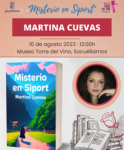 La capacidad artística de la socuellamina Martina Cuevas Cuevas (20 años) no tiene límites. Pianista, pintora y ahora escritora. Mañana 10 de agosto, a las doce de la mañana, en el Museo Torre del Vino presentará su primera novela, un texto de ficción juvenil titulado “Misterio en Siport”.