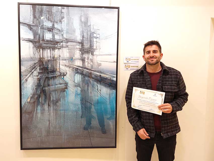 El segundo galardón de 3.000 euros se entregó a Adrián Francisco Marmolejo Clarhed de Coín Granada por su acuarela "Vertical societies XX".