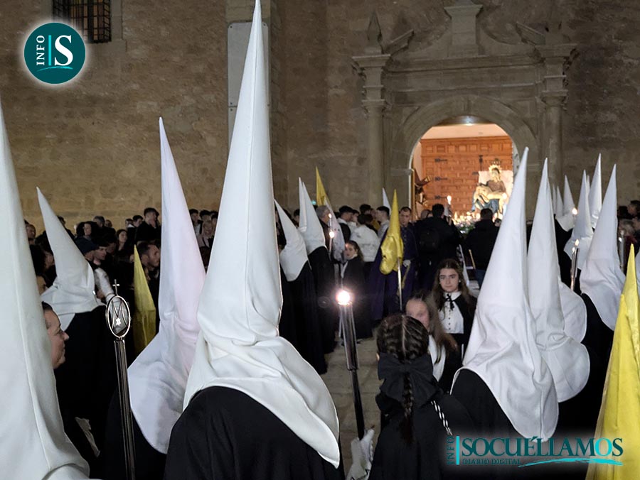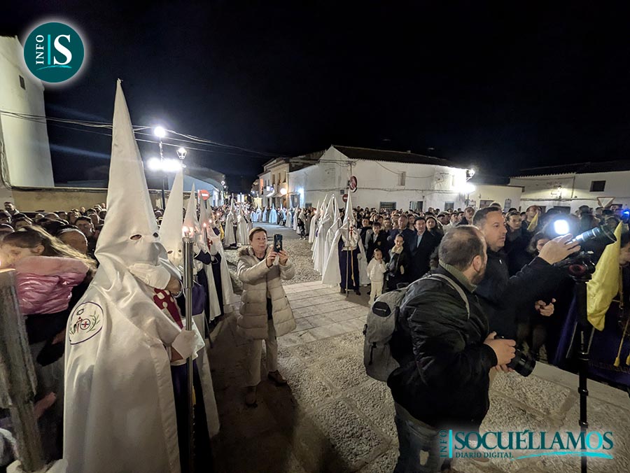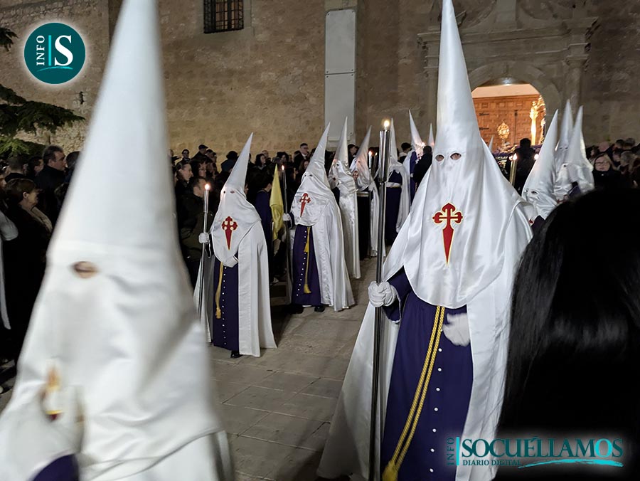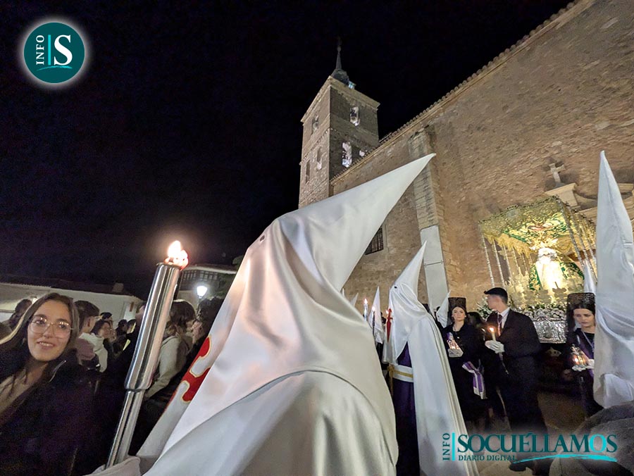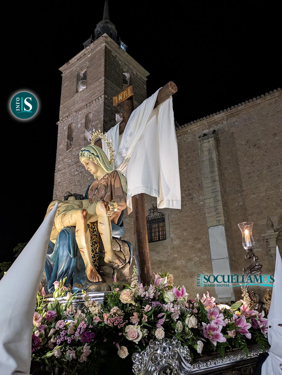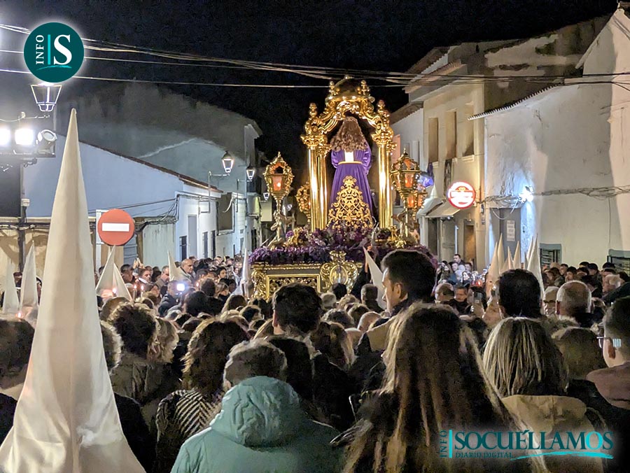 Con un poco de retraso debido a la demora en la llegada de la Preciosísima Sangre de Cristo, ha salido esta noche la procesión de Ntra. Sra. de la Piedad seguida de la de Ntro. Padre Jesús Nazareno y María Santísima de la Esperanza. La temperatura era fría y con algo de viento lo cual no ha sido obstáculo para dejarnos, al igual de las demás procesiones de la bellísima Semana Santa socuellamina, momentos de gran emoción y preciosas estampas