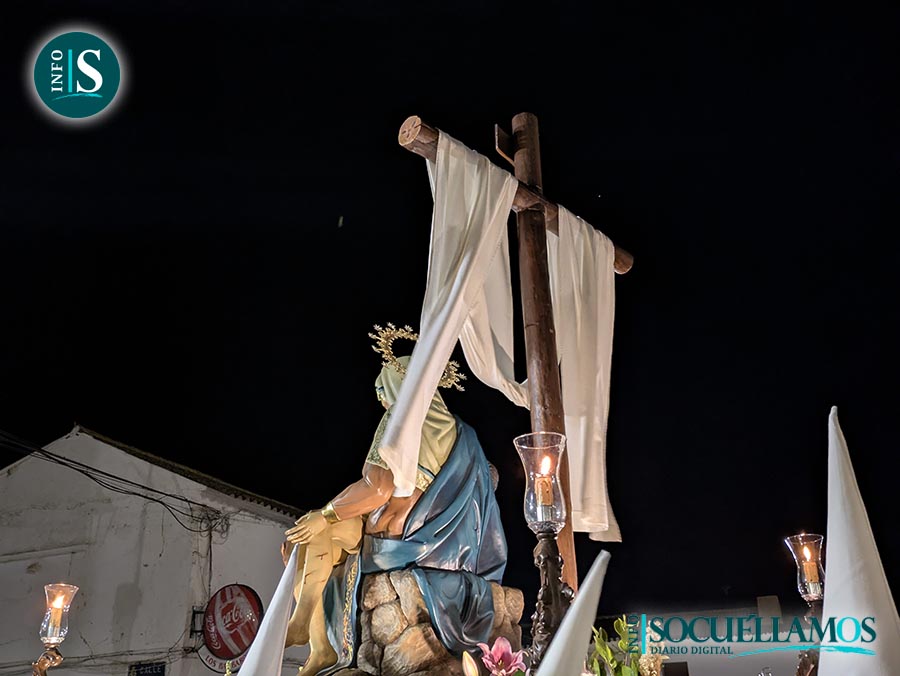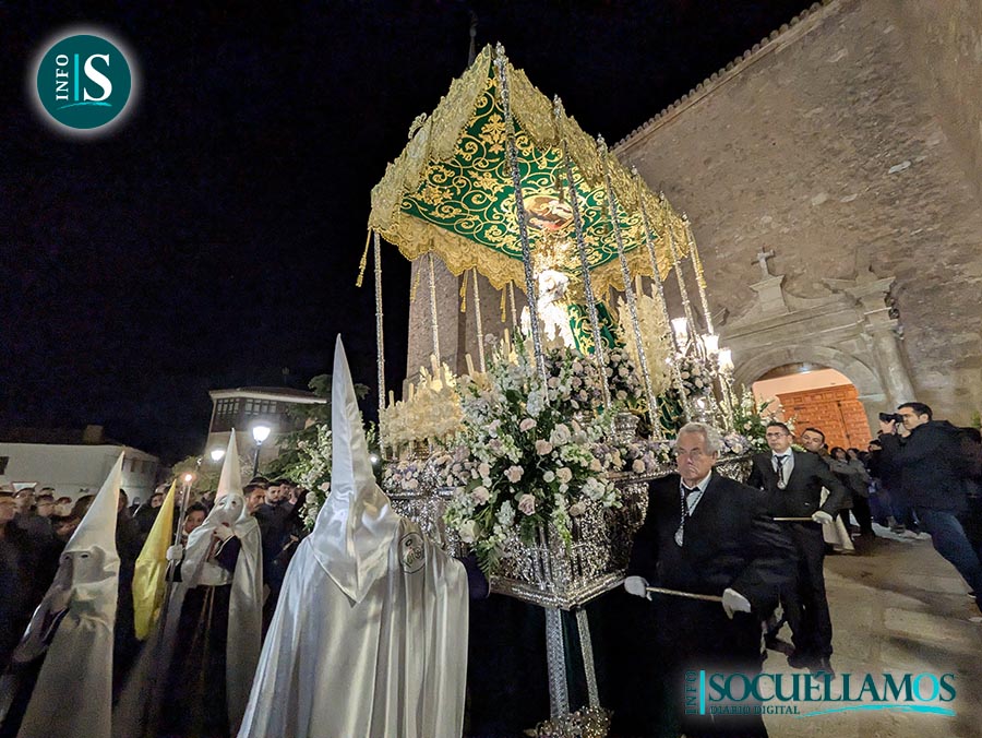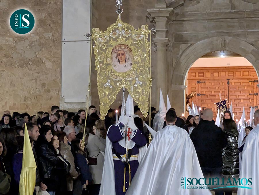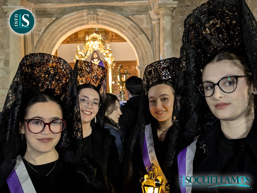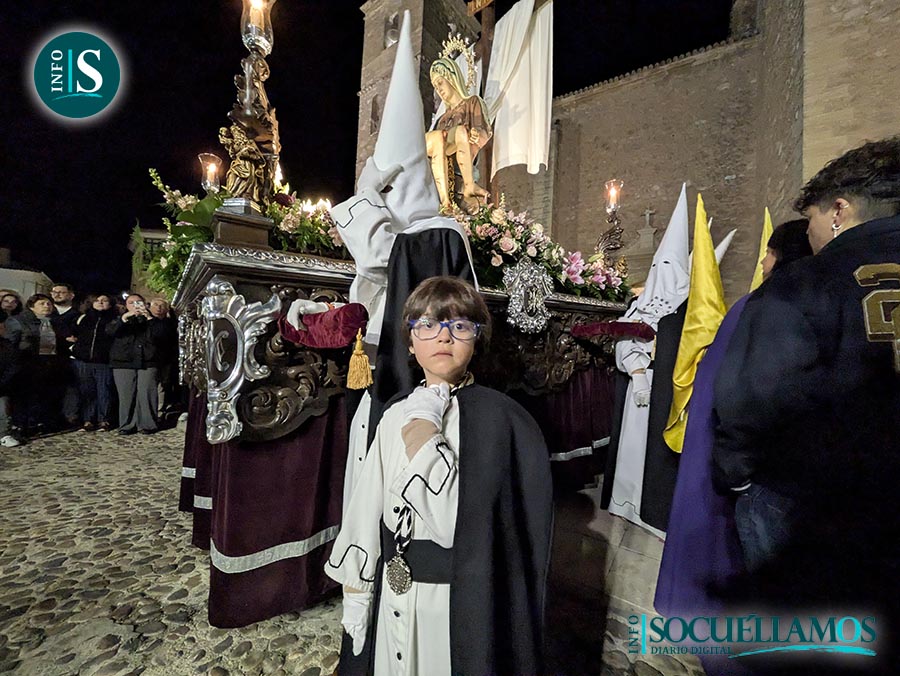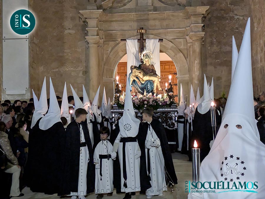 Con un poco de retraso debido a la demora en la llegada de la Preciosísima Sangre de Cristo, ha salido esta noche la procesión de Ntra. Sra. de la Piedad seguida de la de Ntro. Padre Jesús Nazareno y María Santísima de la Esperanza. La temperatura era fría y con algo de viento lo cual no ha sido obstáculo para dejarnos, al igual de las demás procesiones de la bellísima Semana Santa socuellamina, momentos de gran emoción y preciosas estampas