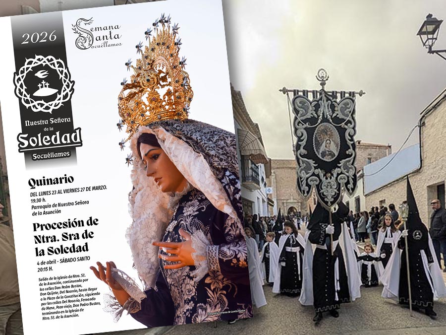 La Cofradía de Ntra. Sra. de la Soledad entra ya en modo Semana Santa y perfila los detalles de sus próximas celebraciones para este año 2026. A través de su cartel oficial, se han dado a conocer los actos religiosos programados, que incluirán el tradicional Quinario y su esperada salida procesional del Sábado Santo por las calles del municipio.