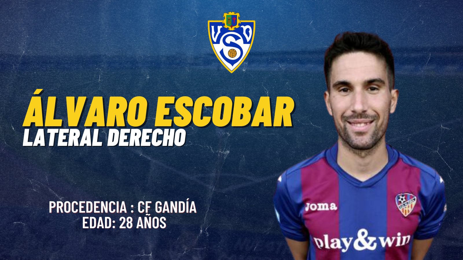 Álvaro Escobar García es de Denia (Alicante), tiene 28 años, y juega en la posición de lateral derecho.