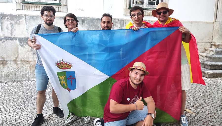 La bandera de Socuéllamos que se llevaron a Portugal la han traído repleta de firmas de jóvenes de todo el mundo.