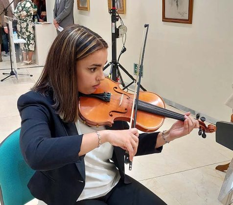 El acto estuvo envuelto por un exquisito repertorio clásico interpretado por Alberto Condés Perona (violonchelo) y Celia Barceló Perona (violín), nietos del homenajeado, y su hija Paqui Perona González (piano).