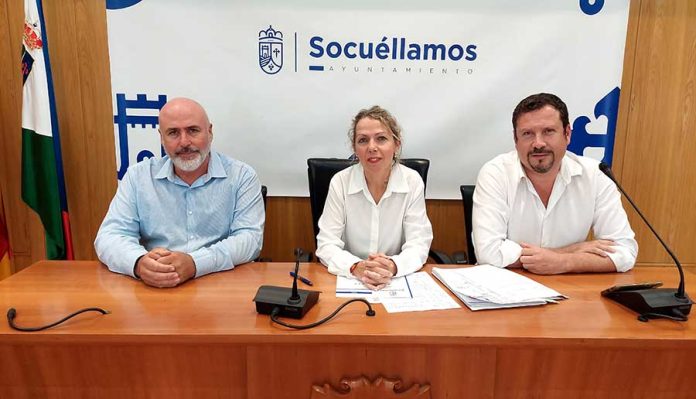 El portavoz del equipo de Gobierno, Luis Miguel Cebrián, acompañado por la alcaldesa, Conchi Arenas y el primer teniente de alcalde, José Luis Romero del Hombrebueno, ha comparecido ante la prensa para evaluar los primeros cien días de gobierno de PP y Vox en el Ayuntamiento de Socuéllamos.
