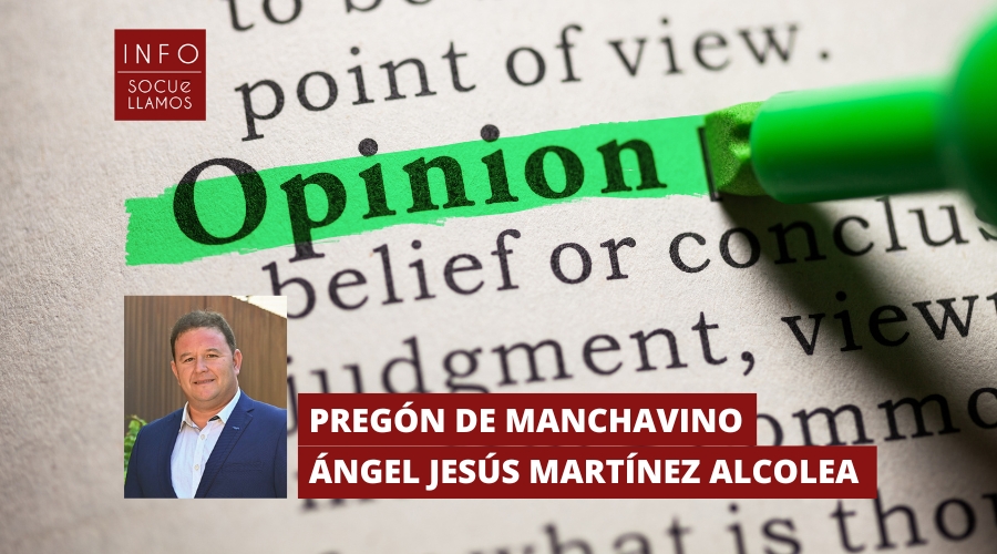 Mi cometido esta noche es anunciar a los vecinos de Socuéllamos que se acercan días festivos, pero no de una festividad cualquiera, se acerca Manchavino, una festividad que identifica a Socuéllamos y sus gentes como ninguna otra, en estos días se mezcla la pasión y la devoción del pueblo de Socuéllamos por su Patrona a la vez que podemos asistir a diversas actividades lúdicas y culturales relacionadas con el vino, nuestro eje económico y social.