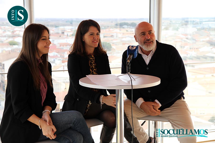 Alba López, concejal de turismo del Ayuntamiento de Socuéllamos, Mª Jesús Pelayo, vicepresidente del Diputación de Ciudad Real y José Luis Romero del Hombrebueno, teniente de alcalde del Ayuntamiento de Socuéllamos han presentado en la Torre del Vino 'SABOR QUIJOTE, La Magia del Vino' que se va a celebrar mañana sábado 23 de noviembre en Socuéllamos.