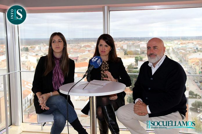 Alba López, concejal de turismo del Ayuntamiento de Socuéllamos, Mª Jesús Pelayo, vicepresidente del Diputación de Ciudad Real y José Luis Romero del Hombrebueno, teniente de alcalde del Ayuntamiento de Socuéllamos han presentado en la Torre del Vino 'SABOR QUIJOTE, La Magia del Vino' que se va a celebrar mañana sábado 23 de noviembre en Socuéllamos.