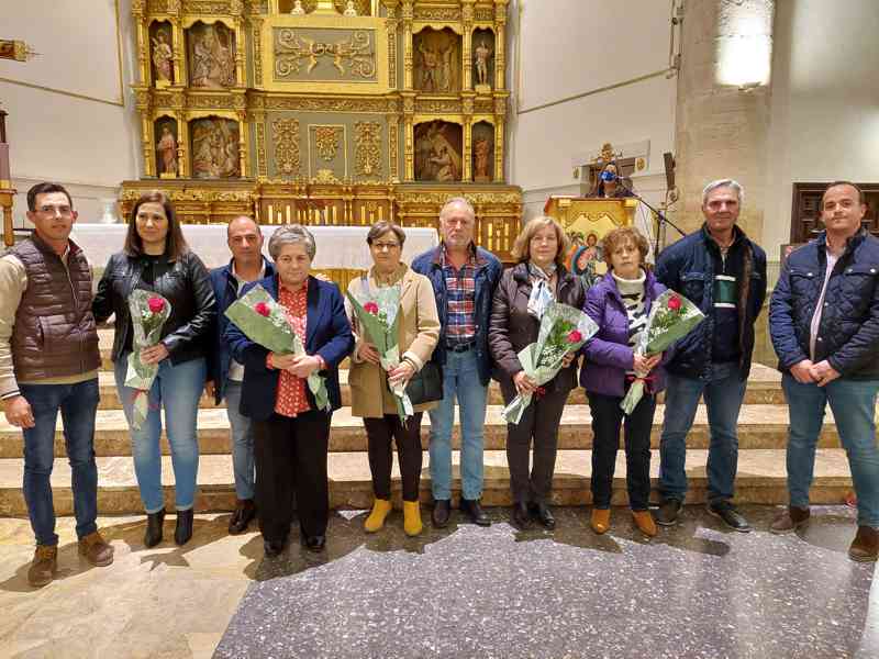 Los hombres y mujeres que cargarán los 700 kilos del paso recibieron la insignia de la cofradía. Jesús Carrasco las entregó uno a uno a: Francisco Javier Alarcón Atencia; Belén Alarcón Fernández; Yolanda Alarcón Fernández; Ángel Alarcón Serrano; Antonio Alumbreros Cobo; Pablo Cañadas Pozuelo; Carlos David Carrasco Delicado; Ángel Del Socorro Ramírez; José Antonio Díaz Cuélliga; Ángel Domingo Perea; José Luis García Alarcón; Marino García Alumbreros; Antonio Francisco Gómez Alarcón; Javier Gómez Toribio; Alfonso Javier González Vallejo; Andrés Izquierdo Alcolea; Juane Izquierdo Izquierdo; Antonio Lara Mateo; José Ramón Mateo Izquierdo; Moisés Merino González; Manuel Molina; Diego Molina Flores; Julián Molina Flores; Óscar Piqueras Villar; Daniel Ruiz Gallego; Jaime Ruiz Soro; Juan Manuel Torremocha Molina; Pedro Antonio Valenciano Perales; Francisco Alarcón Fernández (contraguía); Miguel Ángel Delgado Cuevas (contraguía); y el capataz Alfonso González Alcolea.