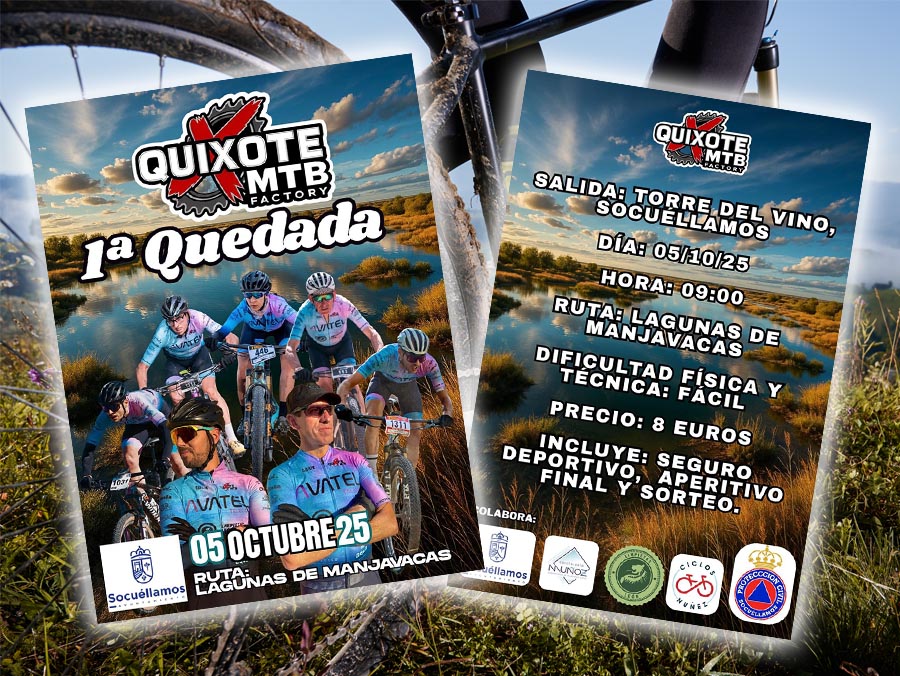El próximo domingo 5 de octubre de 2025, Socuéllamos acogerá la 1ª Quedada MTB organizada por el club Quixote MTB Factory, un evento deportivo pensado para los amantes de la bicicleta de montaña.