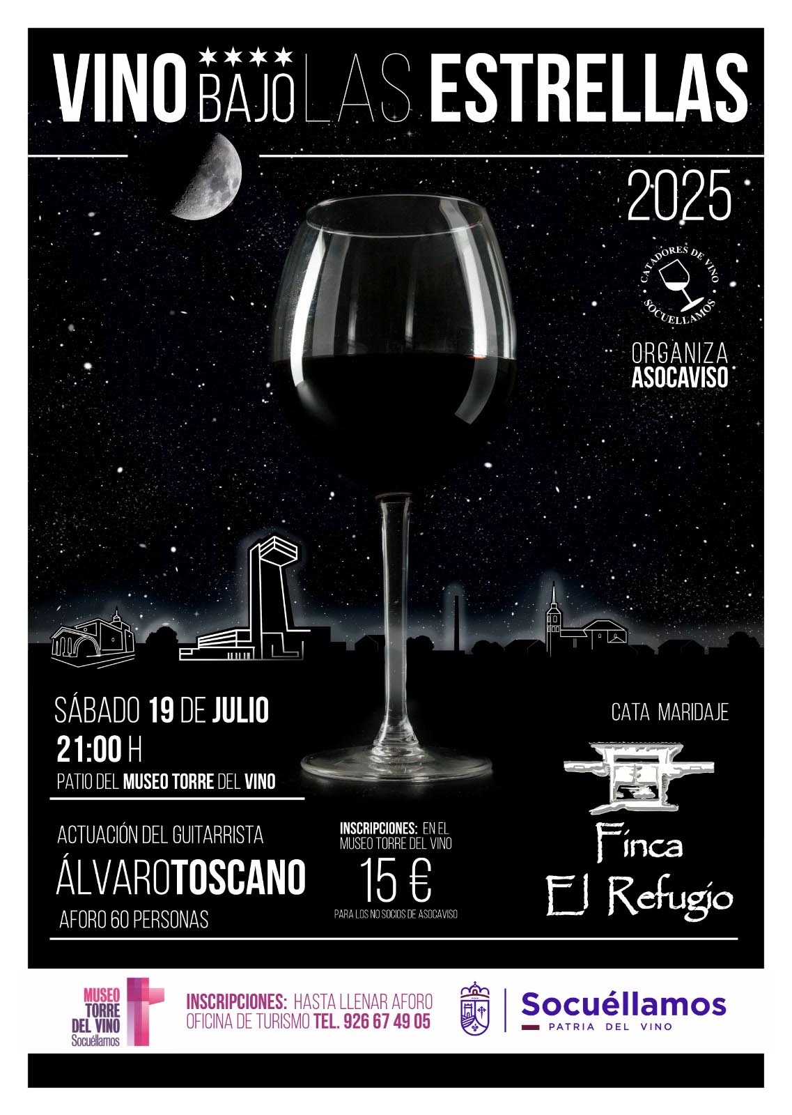 Así, y con la organización de la concejalía de turismo, el viernes, día 11, se catarán vinos de la destilería Miramar Satie acompañados por el humorista Álex Salaberri, y el viernes, día 18, vinos de Bodegas Loreto junto a la música de ‘Syrah Jazz’. Por último, el sábado 19, organizada por ASOCAVISO, se maridarán vinos de Finca El Refugio con la guitarra de Álvaro Toscano, que está actuando a nivel mundial.