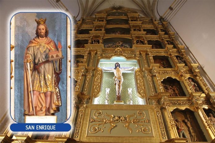 Como en el caso de la imagen de nuestro análisis, se le suele representar de cuerpo entero, en posición frontal, la cabeza ligeramente girada a su izquierda, pelo a la altura de los hombros, mirada hacia arriba, barba y bigote incipientes. Porta corona real; en la mano derecha, espada y en la izquierda miniatura de una iglesia, lo que significa sus donaciones a la Iglesia. Es el santo patrono de los que no tienen hijos, de los duques, de los discapacitados y de los rechazados por las órdenes religiosas. Con su vida nos demuestra que se puede servir tanto a los hombres como a Dios, siguiendo la voluntad de Dios para la propia vida. Una popular oración reza así: Oh emperador, San Enrique, máximo patrono alemán y reconocido patriarca europeo, bondadoso hombre de brillantes virtudes, caballero misericordioso, te pido que me cuides de mis enemigos, haz que logre perdonarlos así como tú perdonaste la traición de tus súbditos.