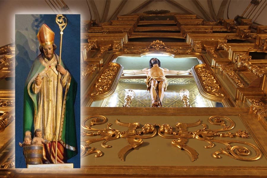 San Nicolás es el patrón de los marineros, comerciantes, arqueros, ladrones arrepentidos, niños, cerveceros, prestamistas, solteros y estudiantes en varias ciudades y países de toda Europa. Su festividad se celebra el 6 diciembre en varios países de Europa Central y Europa del Norte, incluyendo los Países Bajos, Bélgica, Alemania y Austria y el 19 del mismo mes en la Iglesia Ortodoxa. Se le suele representar con los siguientes atributos: Vestiduras de obispo, junto con Cristo a la derecha otorgándole el Evangelio y la Theotokos, a la izquierda entregándole el Omoforio (o el palio) episcopal (algunas veces, con algunos relatos escritos de su vida y muerte incruenta; o también junto con los padres eclesiásticos y apostólicos, y algunos otros santos defensores de la Fe); o el símbolo de tres monedas de oro. También, como en el caso que estamos estudiando, con una barrica y dos niños dentro; con ello se hace alusión al milagro antes citado.