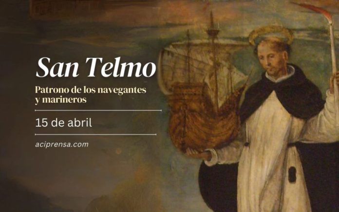 San Telmo confesor, un santo castellano de Palencia. Telmo es sobrino del obispo y buen estudiante, le va la jarana y tiene éxito con las mozas. Su tío lo impulsa a hacerse clérigo y al poco tiempo lo eleva a deán con pingüe beneficio. Telmo rechaza el deanato y entra con los dominicos. Allí se entrega a la oración, con disciplina y sacrificio, orden, obediencia, sacrificio, humildad, estudio, servicio a los demás. A Telmo lo van destinando a varios lugares donde con sus dotes innatas de predicador, explica la doctrina al pueblo, se producen conversiones, dedica tiempo a los pobres y visita a los enfermos. Pasará por Galicia, la recién conquistada Córdoba. Es un santo muy milagrero dicen que le vieron aplacar tormentas, atravesar a pie el Miño, conseguir milagrosamente comida y predecir el día y hora de su muerte conocidos por aviso del Cielo. (s. XIII)