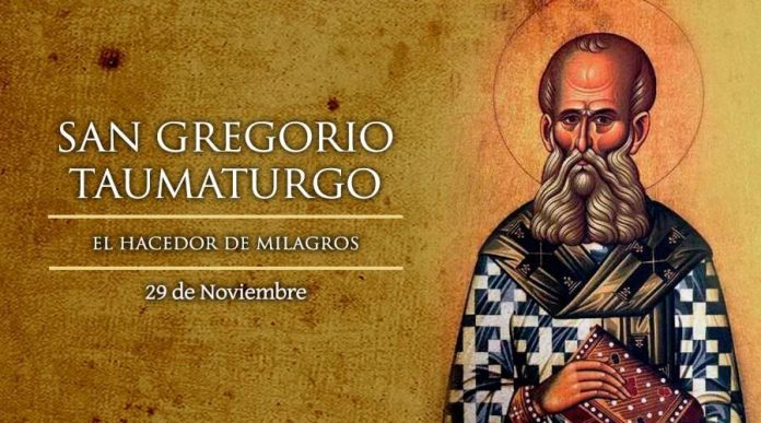 San Gregorio Taumaturgo obispo, que siendo aun adolescente abrazó la fe cristiana, fue progresando en las ciencias divinas y humanas, y, ordenado obispo, brilló por su doctrina, virtudes y trabajos apostólicos. Por los incontables milagros que realizó, se le llamó “Taumaturgo”. Siglo III.