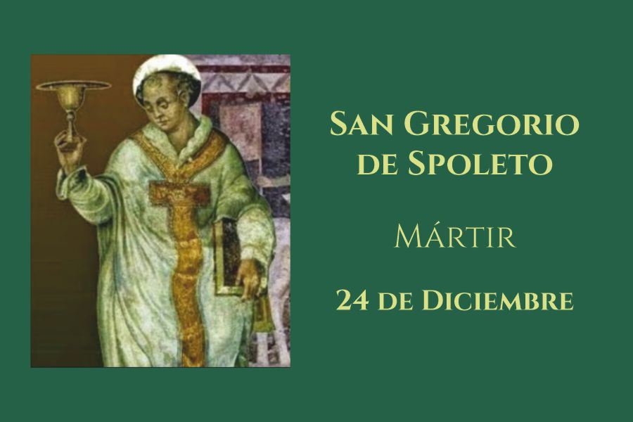 San Gregorio de Spoleto. Vive en la segunda mitad del siglo III en la península Itálica. Es un hombre religioso y bueno, del que escasas noticias nos han llegado hasta hoy. Pero vive en la época de las persecuciones de Diocleciano, y es fácil descubrir a Gregorio en la prohibida devoción cristiana. Hecho preso, es acusado de no querer sacrificar a los dioses y de afirmar que sólo un Dios merece adoración. Muere mártir en el año 303.