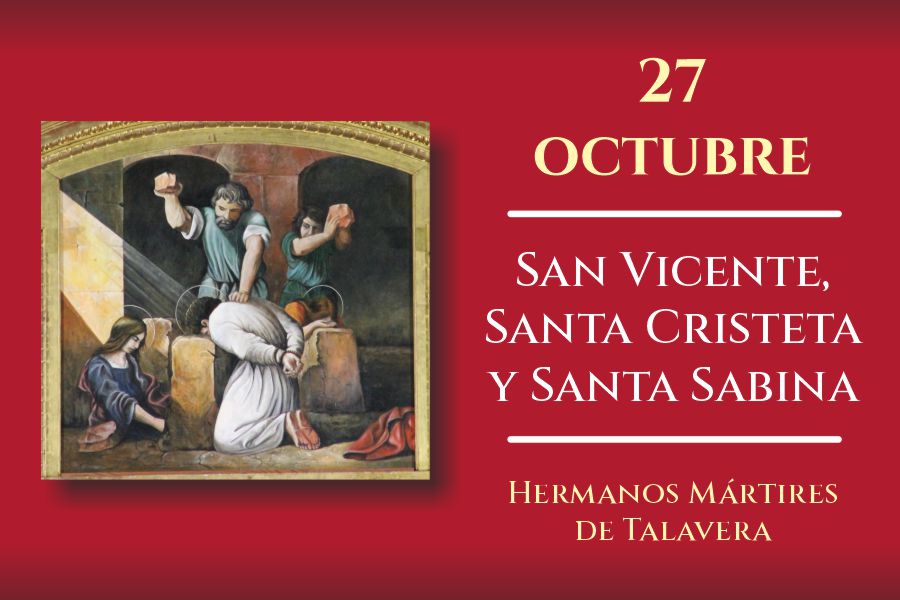 Santa Cristeta, santa Sabina y san Vicente de Talavera hermanos mártires del s. IV, sufrieron su martirio en tiempos de Diocleciano. A Vicente que era el hermano mayor, lo condenan a muerte por su pertinacia en perseverar en la fe cristiana. Lo meten en la cárcel y, en espera de que se cumpla la sentencia, es visitado por sus dos hermanas que, entre llantos y confirmándole en su decisión de ser fiel a Jesucristo, le sugieren la posibilidad de una fuga con el fin de que, sin padres que les tutelen, siga él siendo su apoyo y valedor. La escapada se realiza, pero los soldados romanos los encuentran en la cercana Ávila donde son los tres martirizados, en el año 304.