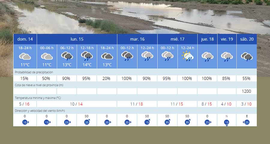 Esta semana lloverá en Socuéllamos prácticamente todos los días con una alta probabilidad. Se prevén bajas temperaturas y precipitaciones para el sábado por lo que se podría frustrar la festividad de San Antón. Las temperaturas serán más altas a principios de semana para ir bajando conforme nos acerquemos al sábado.