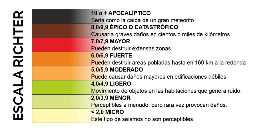 La escala sismológica de Richter, también conocida como escala de magnitud local (ML), es una escala logarítmica que asigna un número para cuantificar la energía que libera un terremoto, denominada así en honor del sismólogo estadounidense Charles Francis Richter.