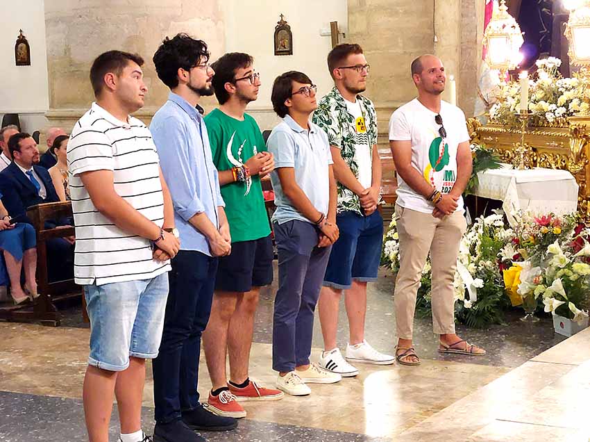 Anoche en la Novena del Cristo de la Vega siete jóvenes socuellaminos recibieron la bendición de los sacerdotes Rafael Ruiz y Amando López tras su participación en la Jornada Mundial de la Juventud celebrada en Lisboa del 1 al 6 de agosto.