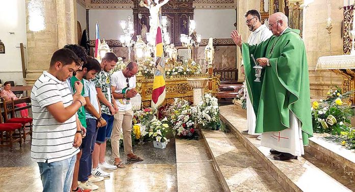 Anoche en la Novena del Cristo de la Vega siete jóvenes socuellaminos recibieron la bendición de los sacerdotes Rafael Ruiz y Amando López tras su participación en la Jornada Mundial de la Juventud celebrada en Lisboa del 1 al 6 de agosto.