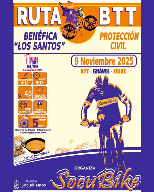 Socuéllamos se prepara para vivir una jornada de deporte y solidaridad con la celebración de la Ruta BTT Benéfica “Los Santos”, que tendrá lugar el domingo 9 de noviembre, organizada por el club SocuBike con la colaboración del Ayuntamiento de Socuéllamos.