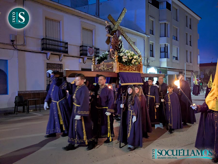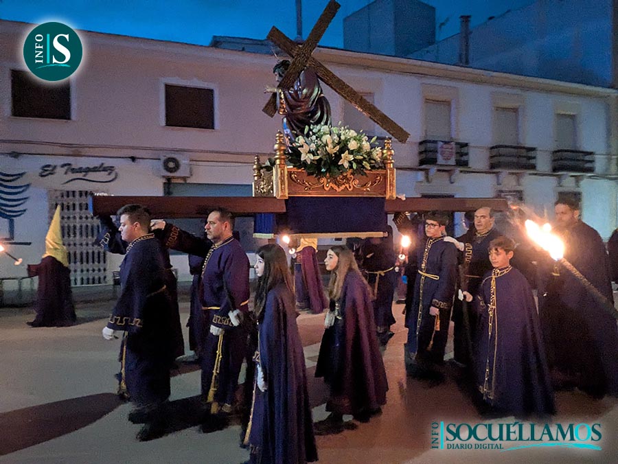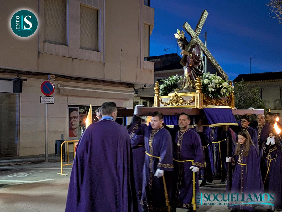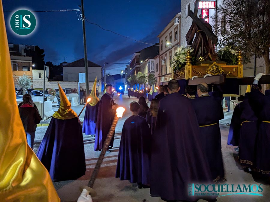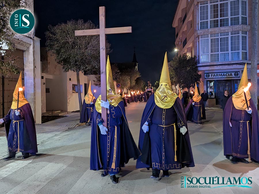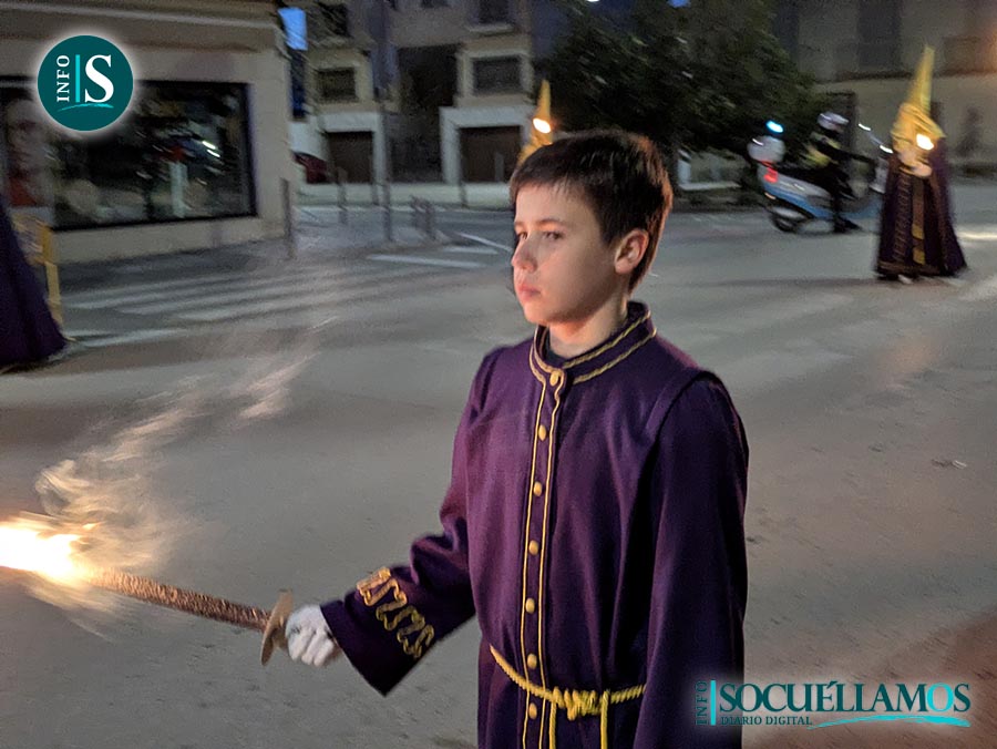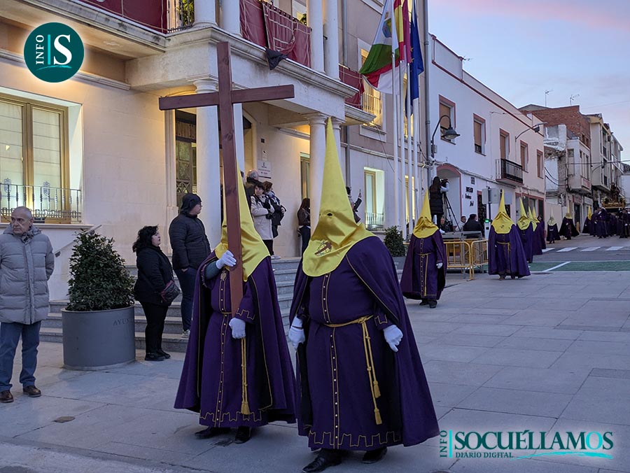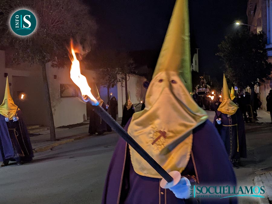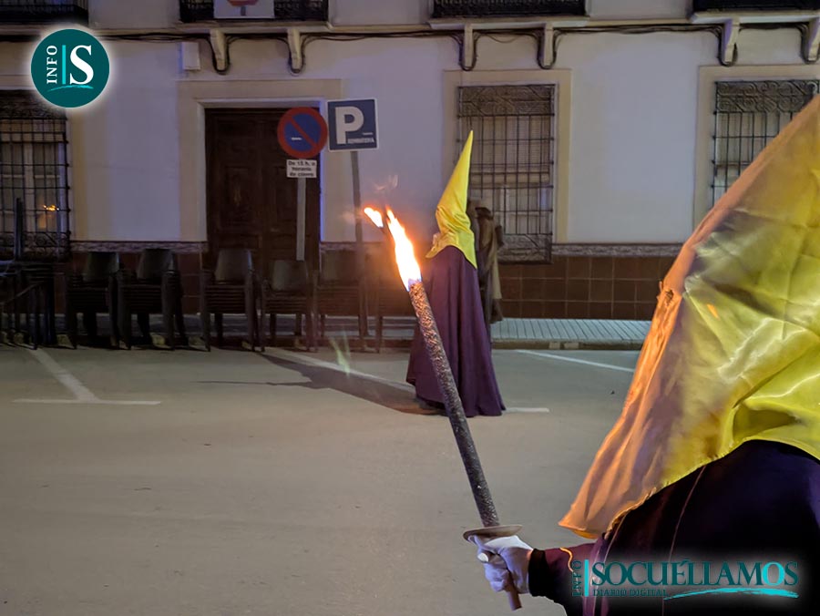 A primera hora del día, con un viento frío que acompañaba el recorrido pero bajo un cielo completamente despejado, los nazarenos han salido portando antorchas, iluminando tenuemente el caminar de las imágenes en un ambiente recogido y solemne, fiel a la esencia de esta procesión. Como es habitual, el desfile ha partido al amanecer, manteniendo una tradición profundamente arraigada en la localidad.