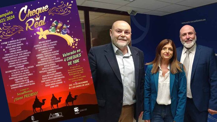 Con este sorteo se culmina la campaña promovida por la Asociación de Empresarios de Socuéllamos CHEQUE REAL. En la campaña han participado 40 comercios locales, cada uno de ellos ha aportado 200 papeletas correspondientes a sendas ventas que han sumado, nada más y nada menos que 8000 compras en el comercio socuellamino. Cada papeleta iba con el nombre del participante y optaban a 4 premios de 100 € cada uno, el CHEQUE REAL. En el sorteo han participado la secretaria de AESO, Magdalena García Aceta, el presidente de AESO, Kico Santos Bustos y el Teniente-Alcalde y Concejal de Desarrollo Empresarial, José Luis Romero del Hombrebueno.