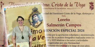 Loreto Salmerón recibe una Mención Especial de la Hermandad Cristo de la Vega.