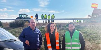 La marcha de agricultores corta la A-43 a la altura de Manzanares. Allí se encuentran los tractores que salieron esta mañana desde Socuéllamos.