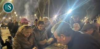 En la luminaria municipal se distribuyeron gratuitamente chorizos y morcillas gracias a la colaboración de las empresas