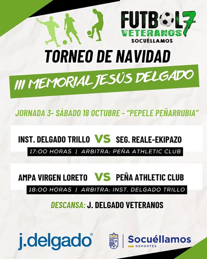 El Torneo de Navidad de Fútbol 7 Veteranos de Socuéllamos continúa este sábado 18 de octubre con la disputa de la tercera jornada del III Memorial Jesús Delgado, que se celebrará en el campo “Pepele Peñarrubia”.