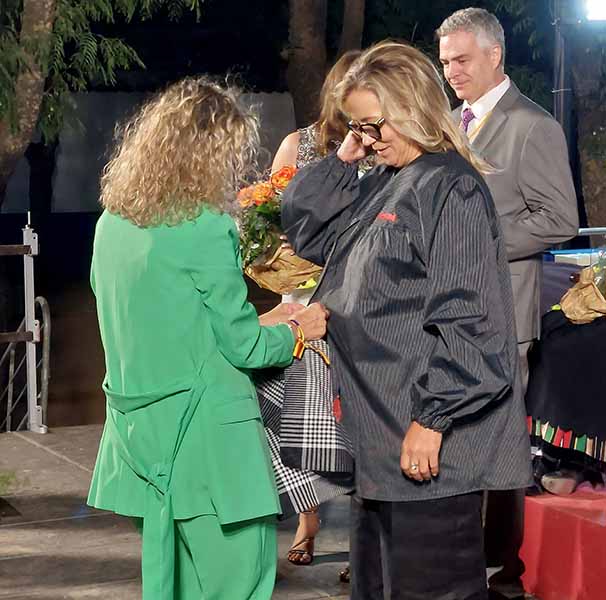 Las blusas y los pañuelos de hierbas las impuso la alcaldesa, Conchi Arenas; el presidente de la Hermandad de la Virgen de Loreto, Miguel Ángel Cuevas les entregó una placa; y también recibieron una placa del Ayuntamiento de manos de los concejales, Alba López, José Luis Romero, y Jesús del Socorro. /