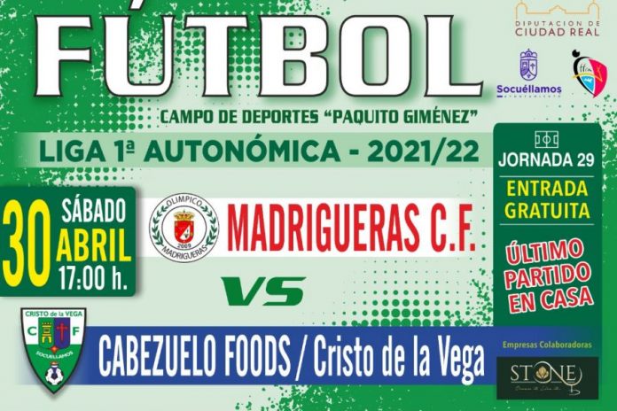 Tan solo un punto separa al Cristo del líder y este sábado 30 de abril juega en casa recibiendo al Madrigueras, un partido difícil ante el cuarto clasificado en el que los de Pope Cabezuelo no pueden fallar para seguir teniendo opciones de arrebatar el primer puesto pedido al conjunto pedroteño.
