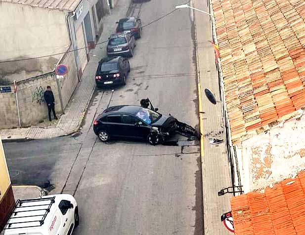 Al mediodía de hoy domingo 26 de febrero un coche ha impactado contra la fachada del número 6 de la calle Amargura.
