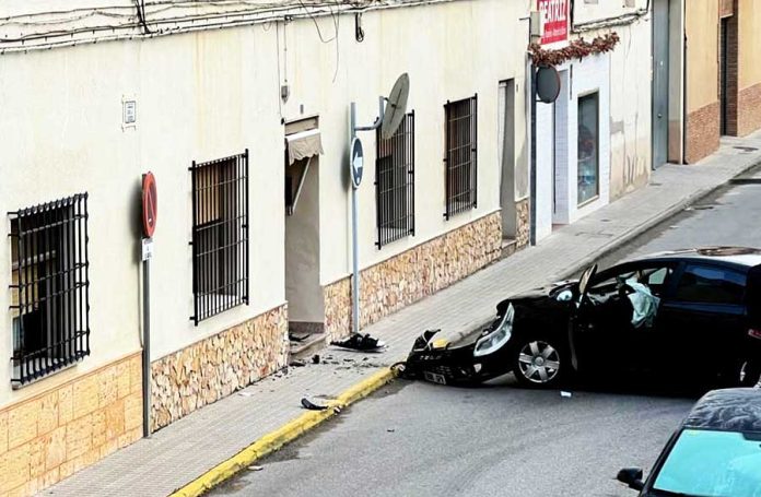 Al mediodía de hoy domingo 26 de febrero un coche ha impactado contra la fachada del número 6 de la calle Amargura.