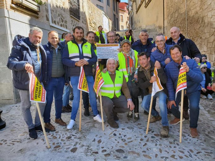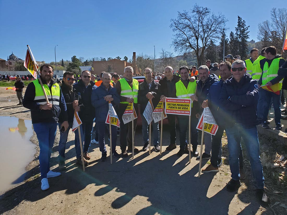 Un grupo de agricultores de Socuéllamos han participado en una manifestación convocada por Unión de Uniones que ha tenido lugar en Toledo este martes 12 de marzo.