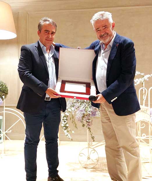 Manuel Gómez, presidente de Asocaviso; Conchi Arenas, alcaldesa de Socuéllamos; Carlos Bonilla, presidente del Consejo Regulador; Alba López, concejal de Turismo; y Félix López de Transportes Félix e Hijos han entregado los galardones./