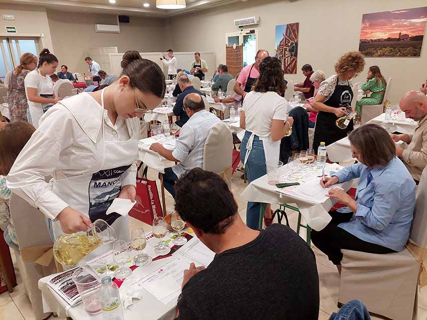 Los catadores (algunos llegados de Tomelloso, Valdepeñas, Villarrobledo, Madrid o Dos Barrios) han realizado seis pruebas donde han tenido que ordenar muestras según su acidez total, acidez volátil, sulfuroso, abocado y taninos, y también determinar la graduación alcohólica de dos vinos.